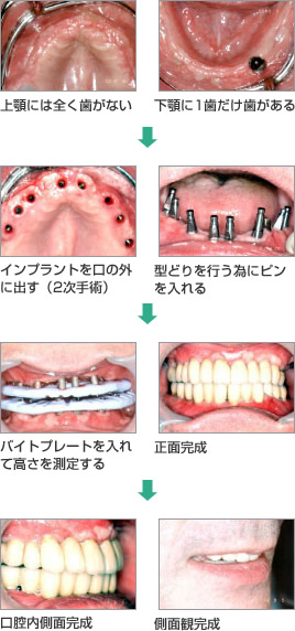 長期間歯がなかったので、この仮歯で十分にかめるように顎の安定的な位置を確認する。(1~2ヶ月間)(注意)歯茎の量が不足している場合は歯肉を移植することがあります。
